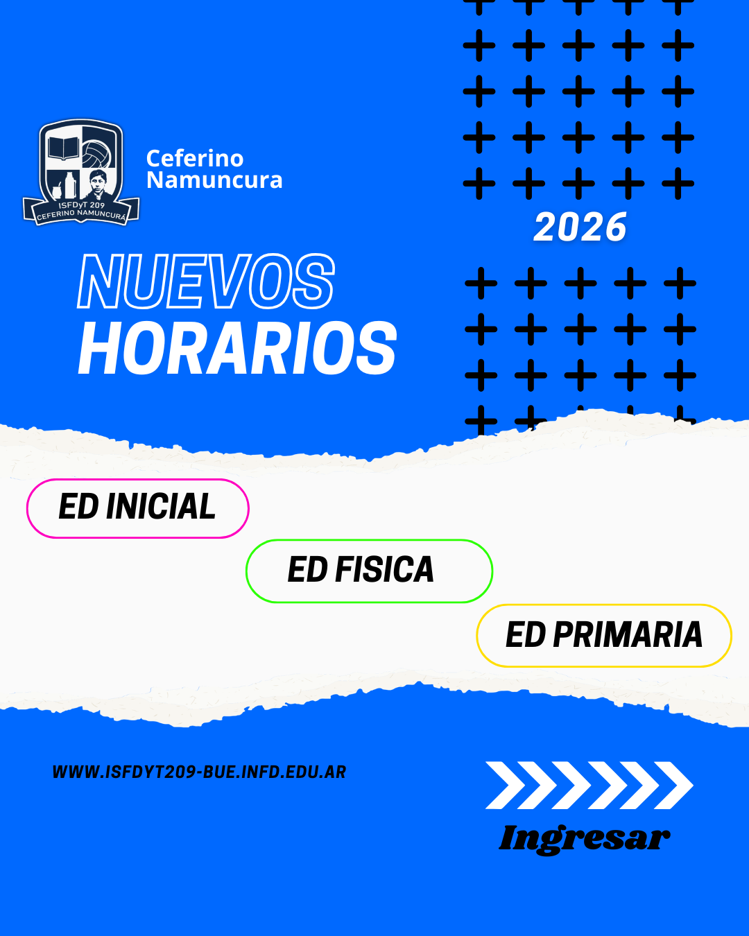 | 24/2 al 6/3 | INSCRIPCION 2026 Ed Física/Inicial Sin Vacantes | Entrega de Documentación (Solo Ed Primaria) 18:30Hs |