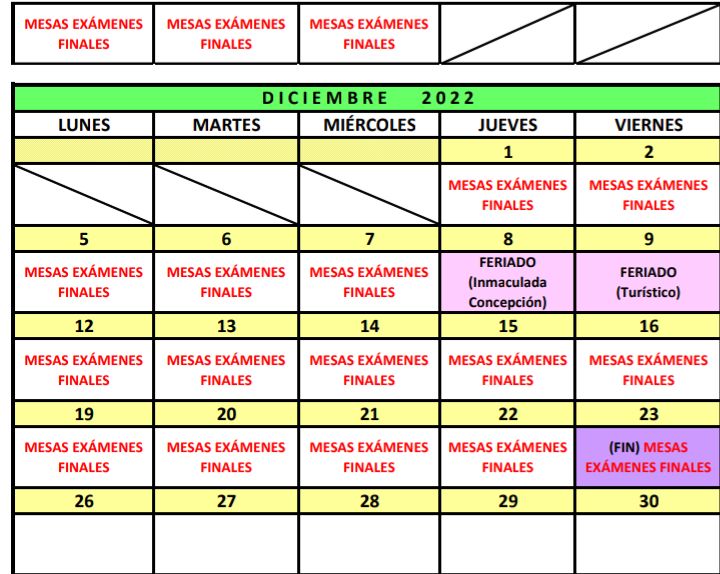 | 14-feb | a | 17-feb | INSCRIPCIÓN A MESAS DE EXÁMENES (Feb-Mzo 2023) |
